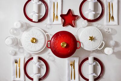隨著年末節慶氛圍升溫,LE CREUSET推出2025最新「歡樂耶誕系列」,主題以冬日花環作延伸設計,將槲寄生與冬青葉的圖案化為鍋蓋立體浮雕,搭配紅、白與新增的海岸藍,營造濃厚節慶感。從鑄鐵鍋到瓷器杯盅,整系列多以金色蓋頭或節慶色塊搭配,上桌視覺效果滿分,呈現使用者的細膩品味。