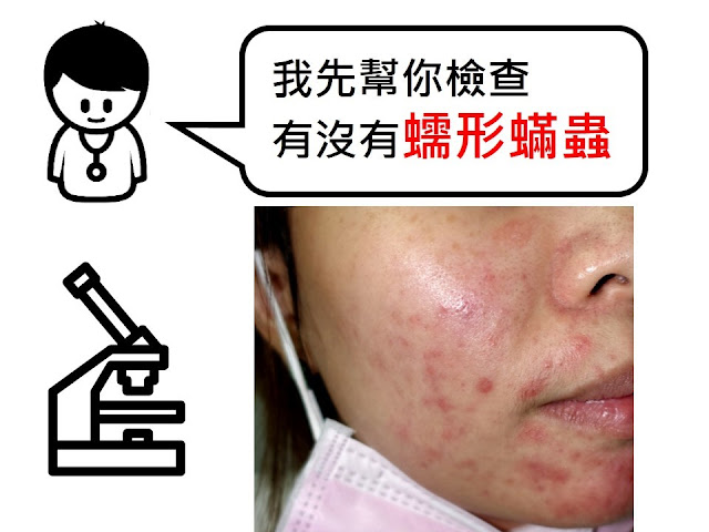 我建議道:「因為你長期擦類固醇,所以我先幫你做個顯微鏡檢查,確認是否有『蠕形蟎蟲』增生的問題。」